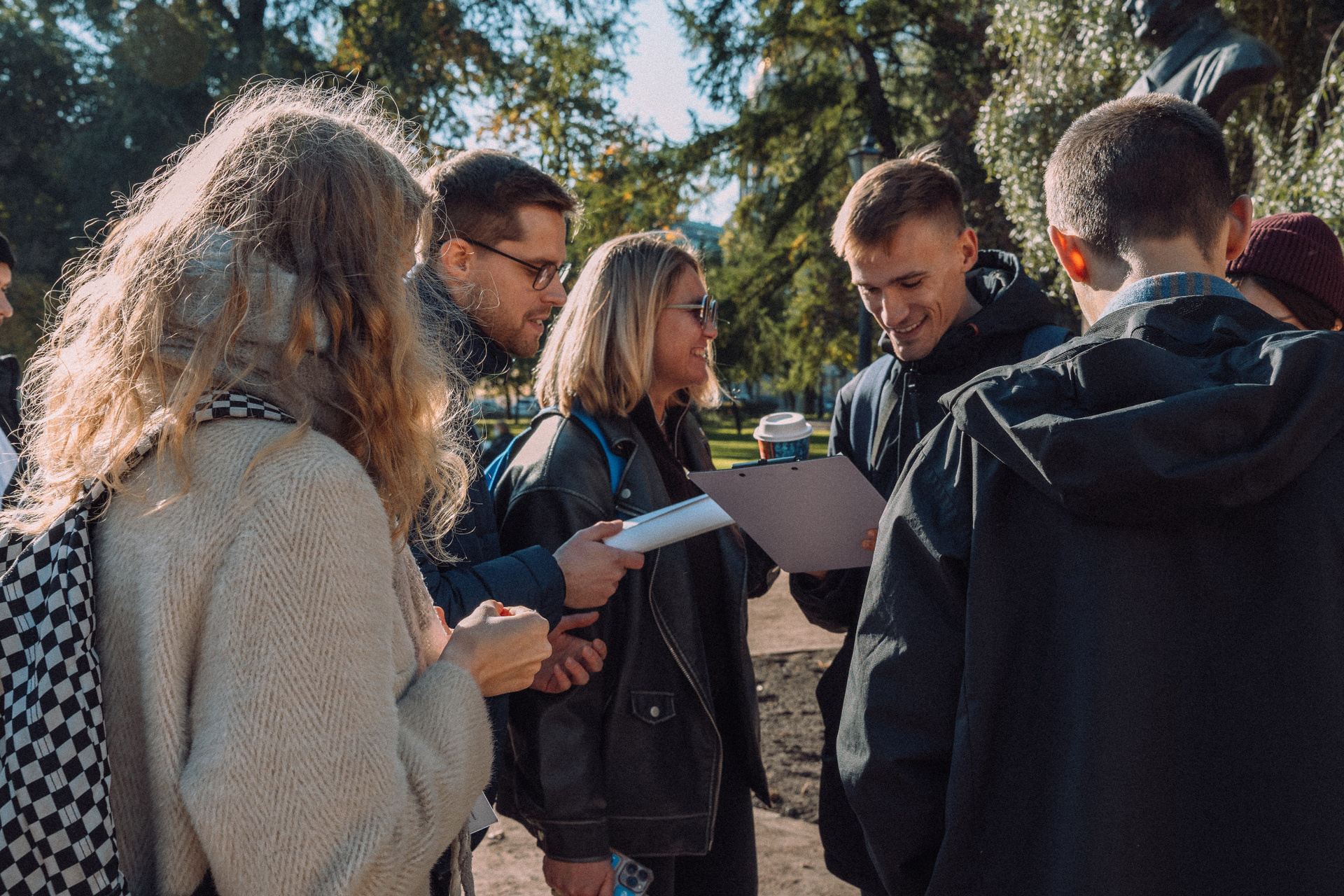 В-третьих, не могу не отметить динамику мероприятия. Контроль времени самим участниками позволяет не застревать на объекте дольше, чем нужно. Ведущий весь квест очень хорошо держал аудиторию, не давая участникам разваливаться и скучать. В-четвёртых, учёт разных особенностей людей. Кому-то заходит работа с текстом, кому-то нужно что-то искать, кому-то что-то считать. Разнообразные задания дают каждому почувствовать себя внутри команды. И конечно же, здорово, что участники фотографируются на маршруте. По итогу, у всех останутся кадры на память.