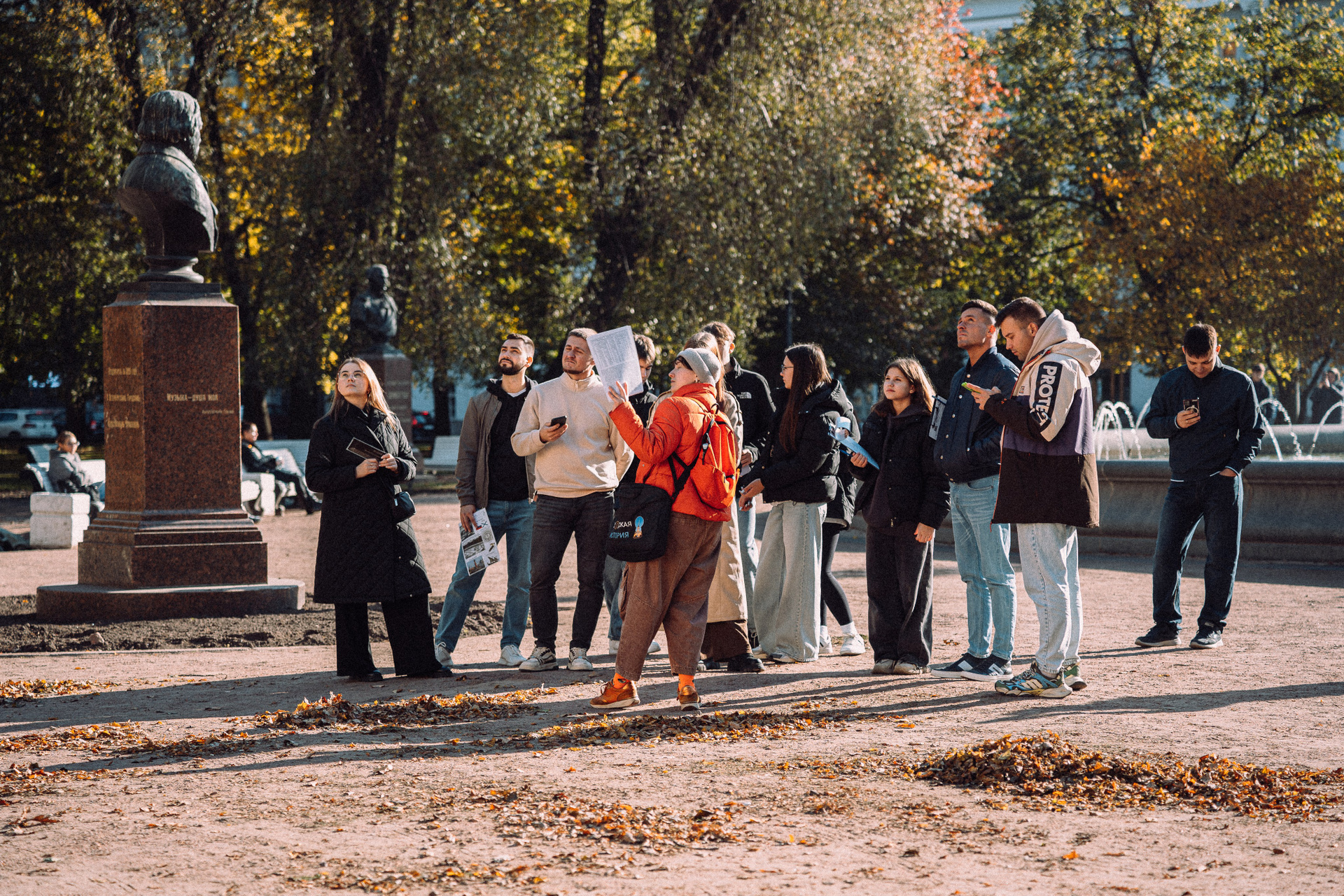 Наша игра — это альтернатива классической экскурсии. Участники узнают информацию в игровой форме, что способствует лучшему ее усвоению, а главное — вам точно не будет скучно! Ведь вы сами, при помощи логики и наводящих вопросов ведущего изучаете историю Санкт-Петербурга.